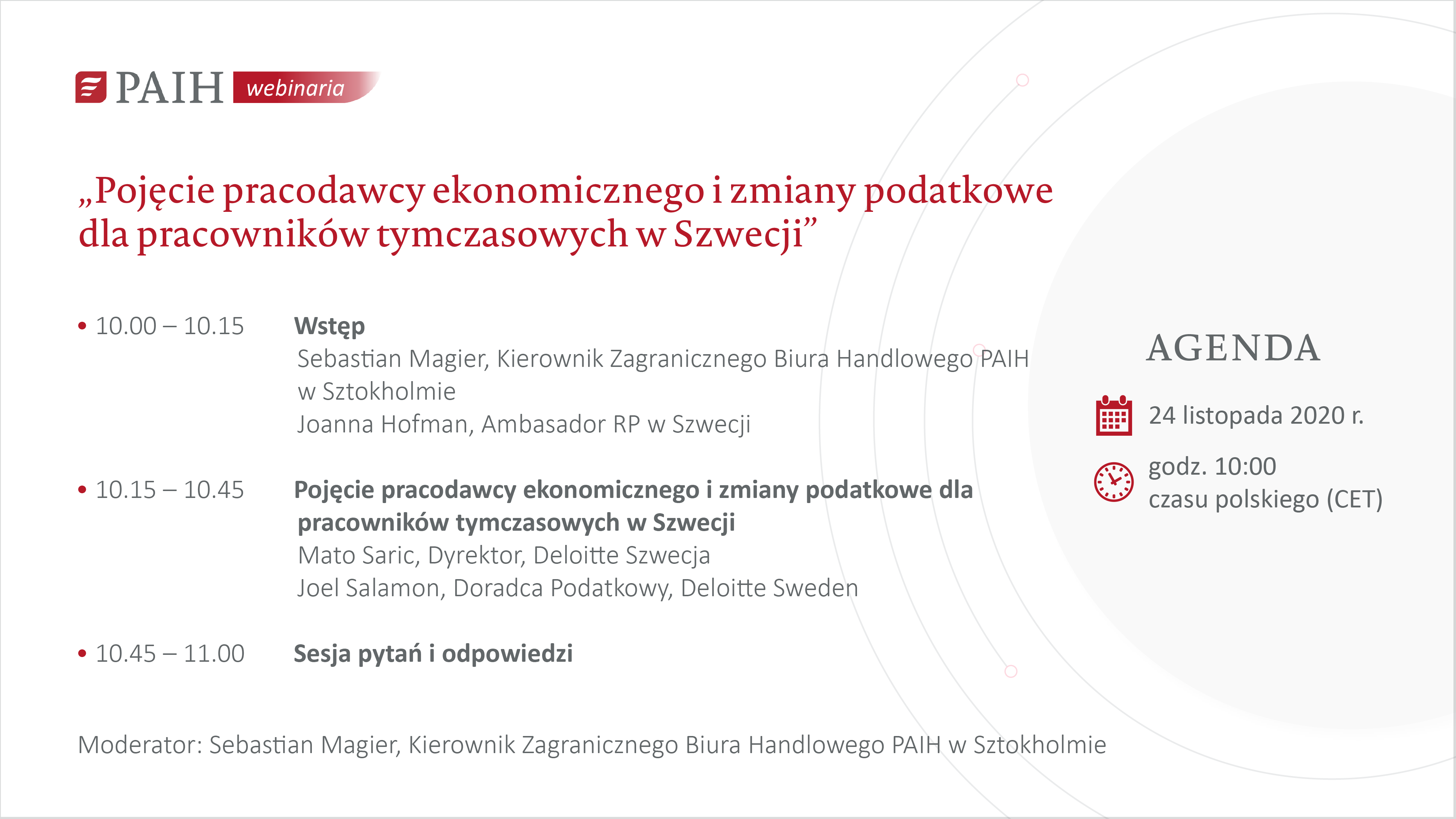 Omówimy również wpływ pozostawania pracowników w Szwecji poza uregulowaną pracą krótkoterminową lub długoterminową oraz jakie nowe obowiązki podatkowe pojawią się zarówno dla pracodawcy, jak i pracownika. Dowiesz się także o:
