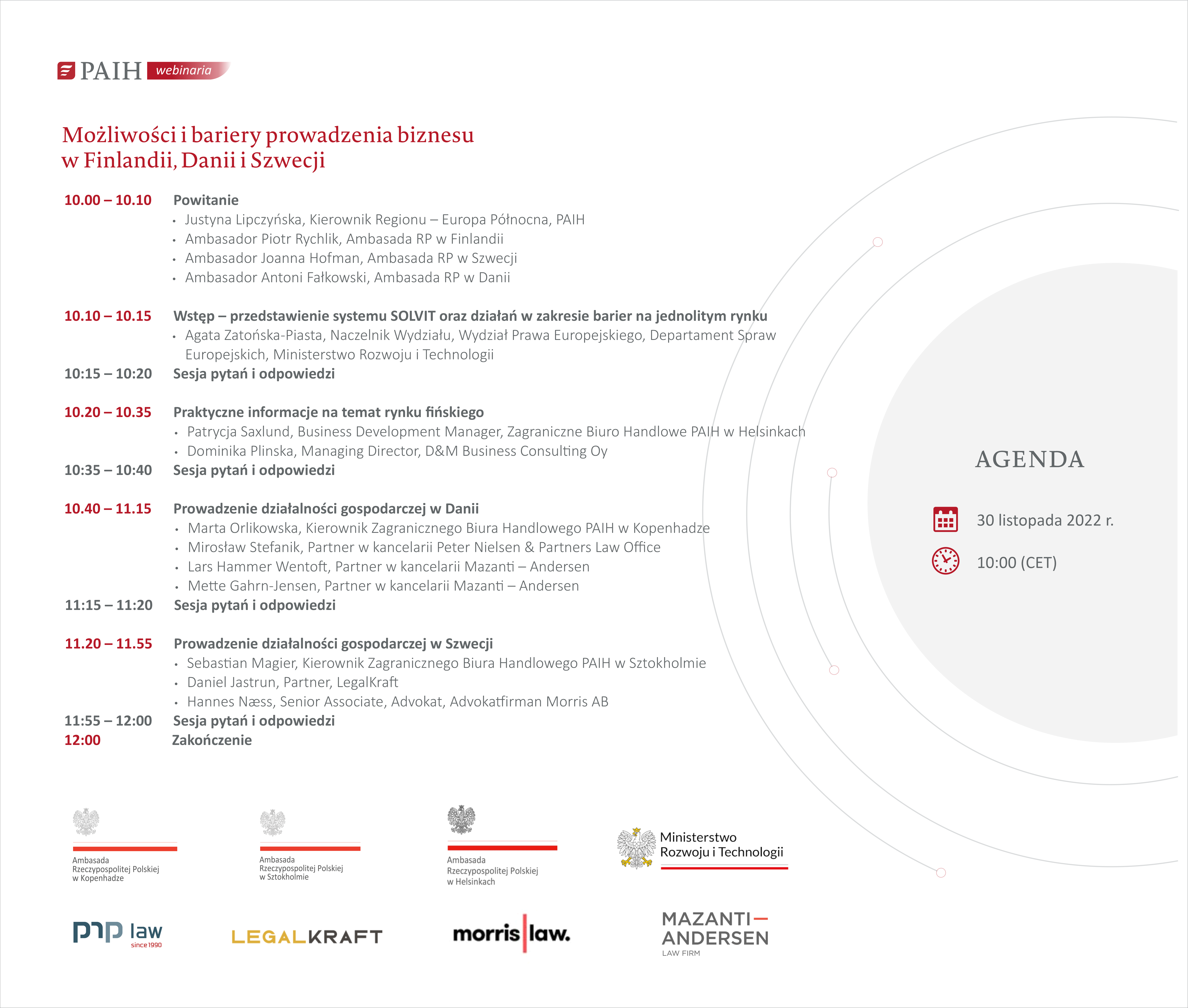 Polska Agencja Inwestycji i Handlu (PAIH) oraz Ministerstwo Rozwoju i Technologii (MRiT) zapraszają na bezpłatne webinarium poświęcone rozpoczęciu działalności gospodarczej w Europie Północnej.