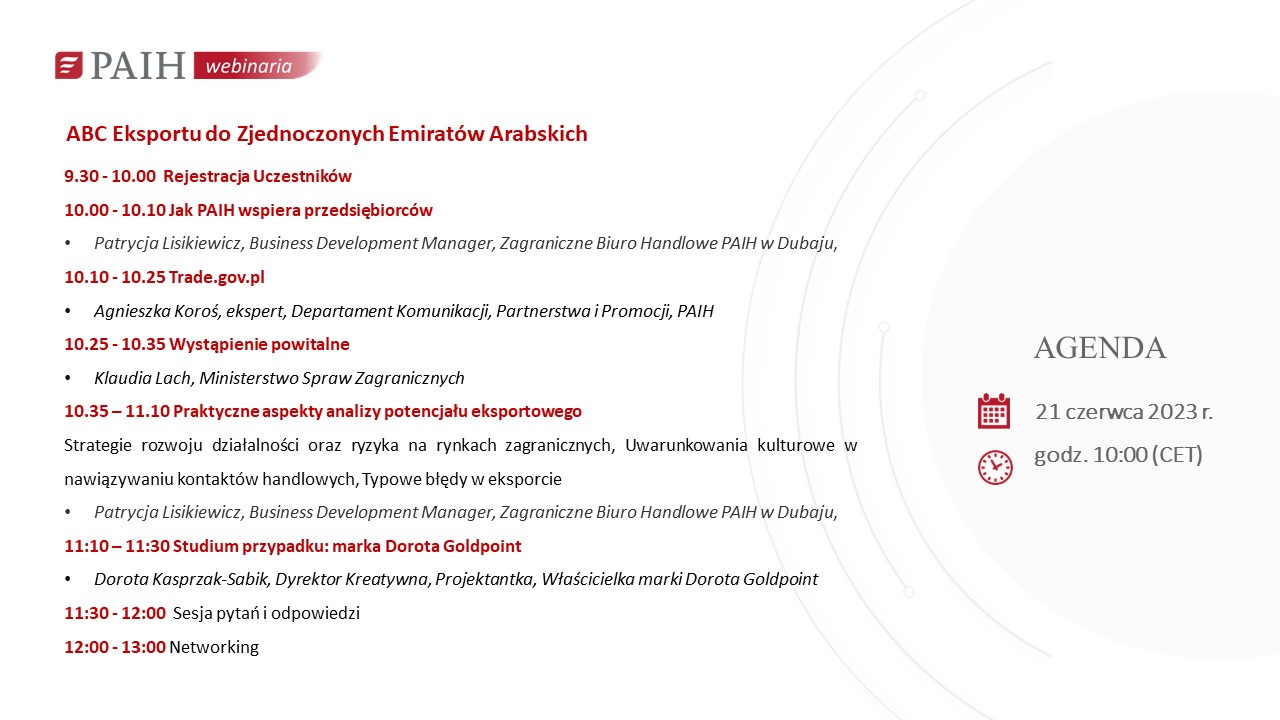 Polska Agencja Inwestycji i Handlu zaprasza na spotkanie informacyjne dotyczącego podstaw eksportu do Zjednoczonych Emiratów Arabskich.